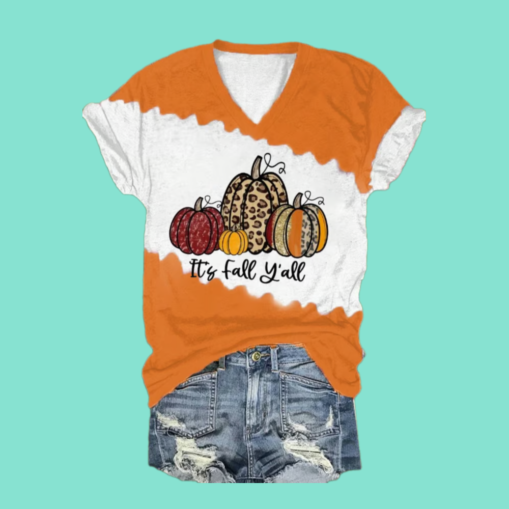 Trendy 2025 Halloween Women’s Pumpkin It’s Fall Y’all T-Shirt – soft, stylish fall graphic tee perfect for autumn outfits.