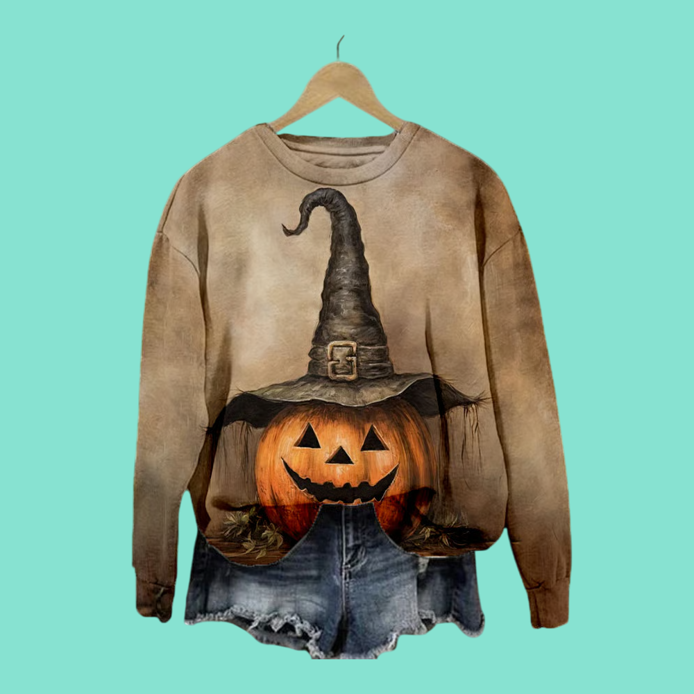 2025 Halloween Women’s Pumpkin Print Sweatshirt – Cozy, Stylish, and Festive