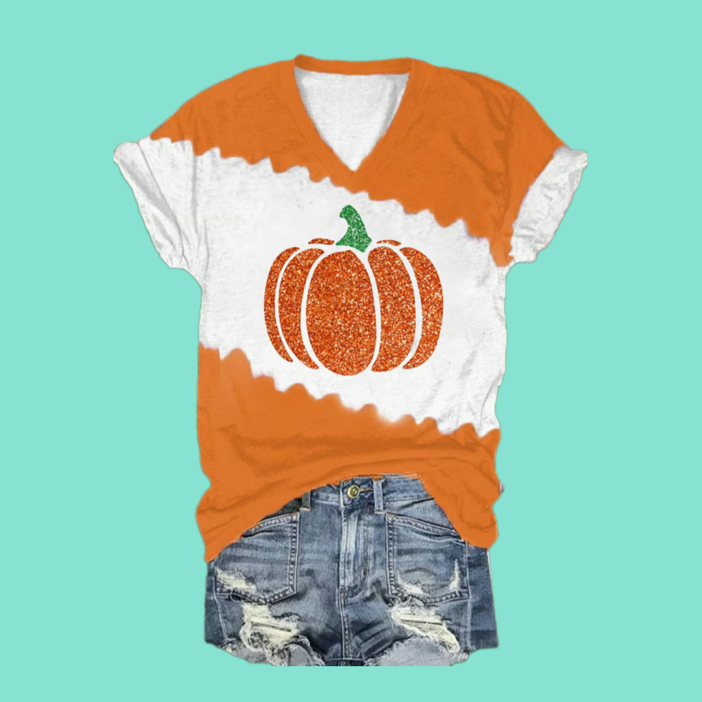 Step into August 2025 trends with the must-have Halloween Women’s Sequin Pumpkin Print T-Shirt, combining comfort and festive sparkle.