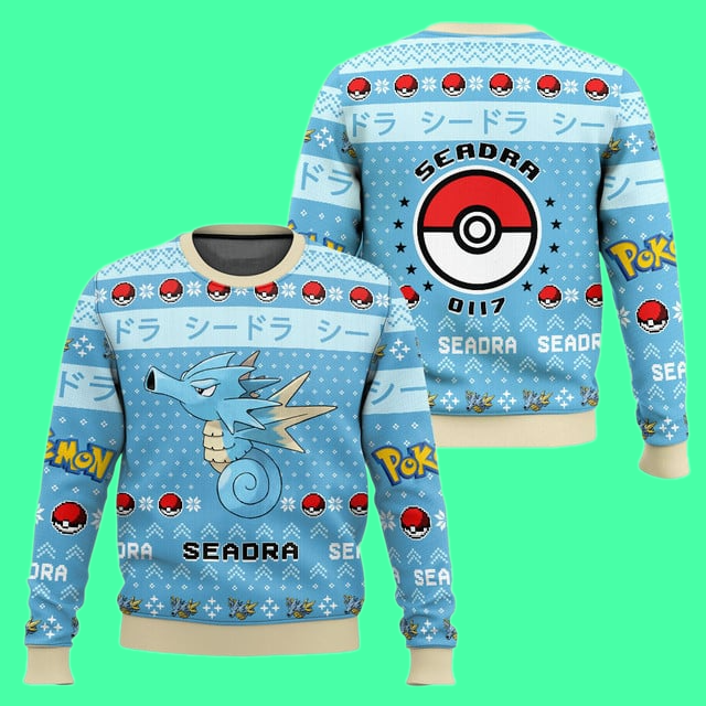 Hooktab PKM Gen 1 Seadra Ugly Sweater – Unique Pokémon Ugly Sweater for Fans